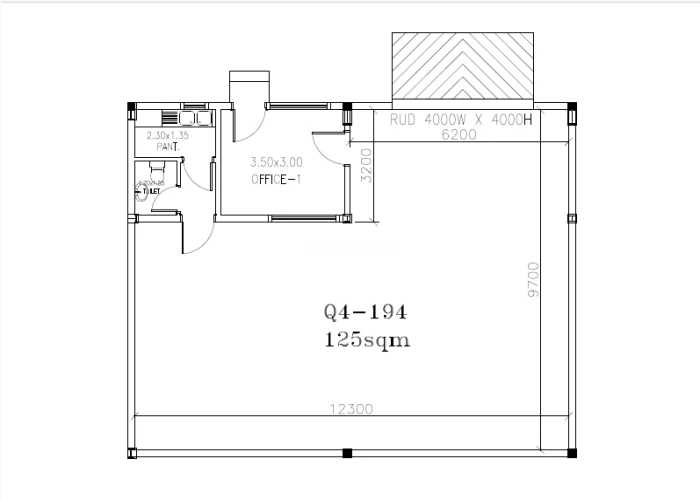 Warehouse: Includes a conditioned office, kitchen, and fire sprinkler system