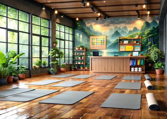 - * Modern yoga studio layout